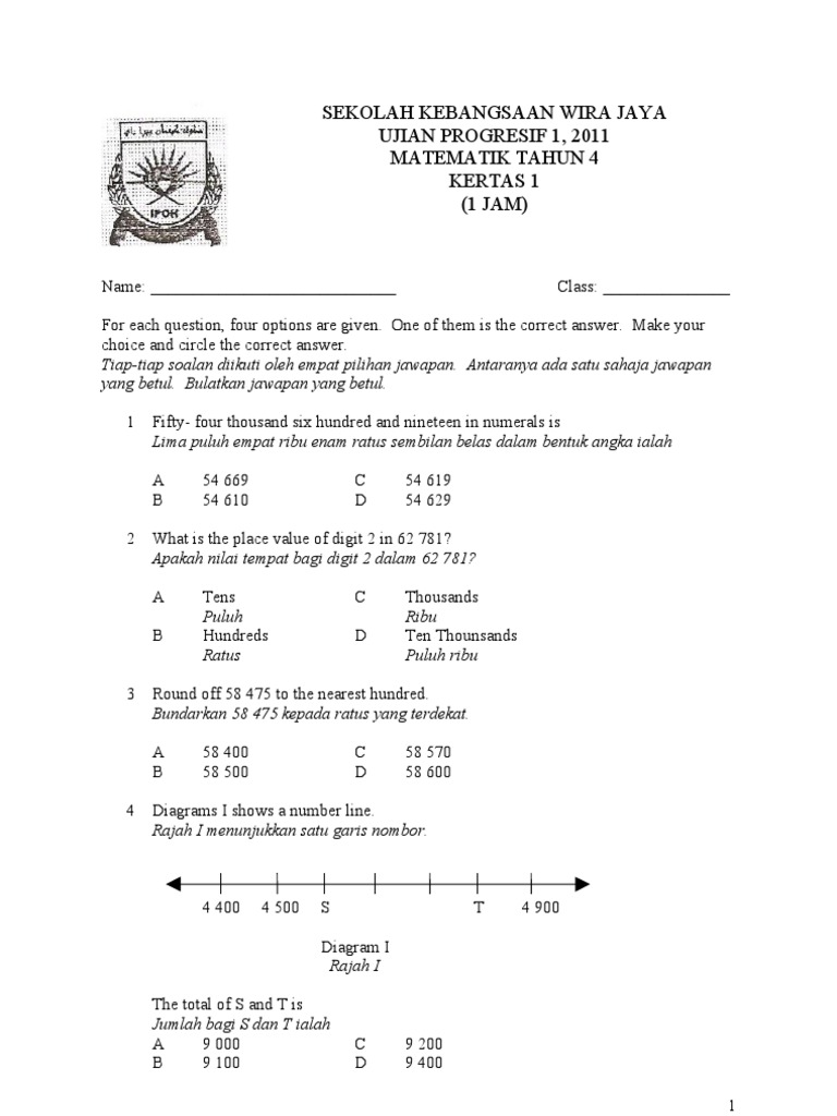 Ujian Progresif Matematik Tahun 4 Kertas 1 Pdf